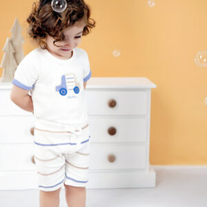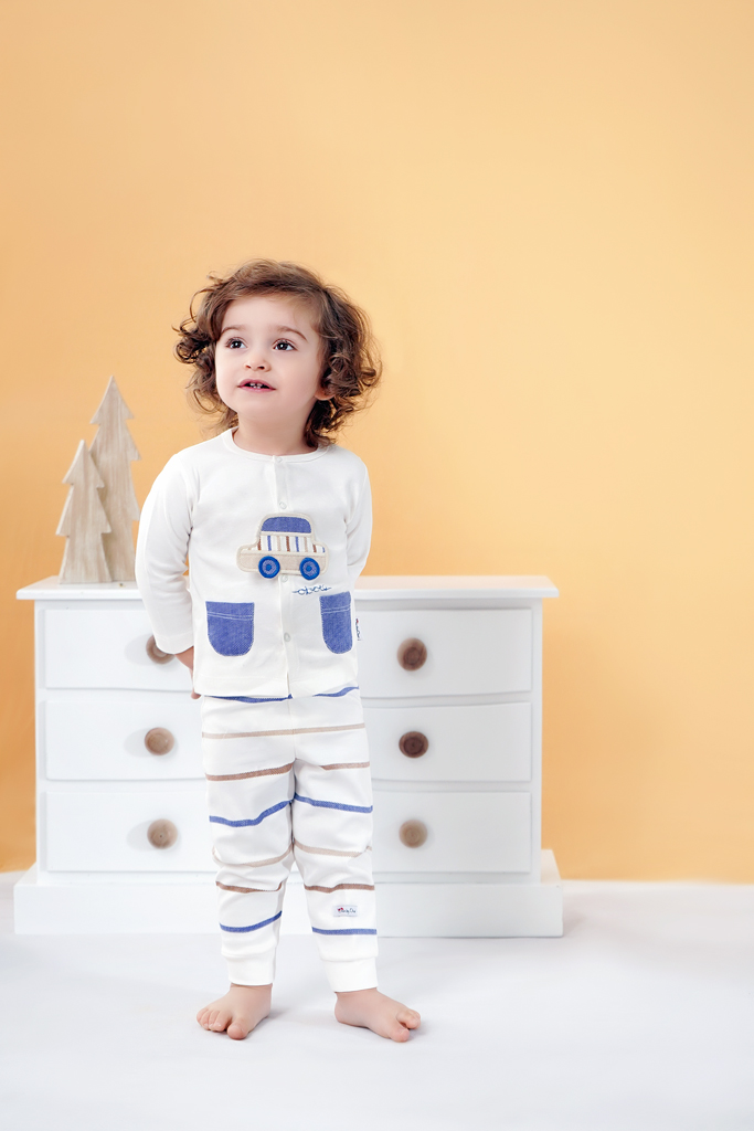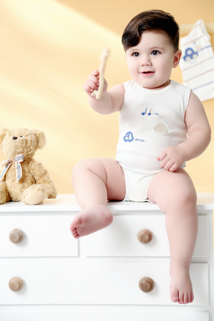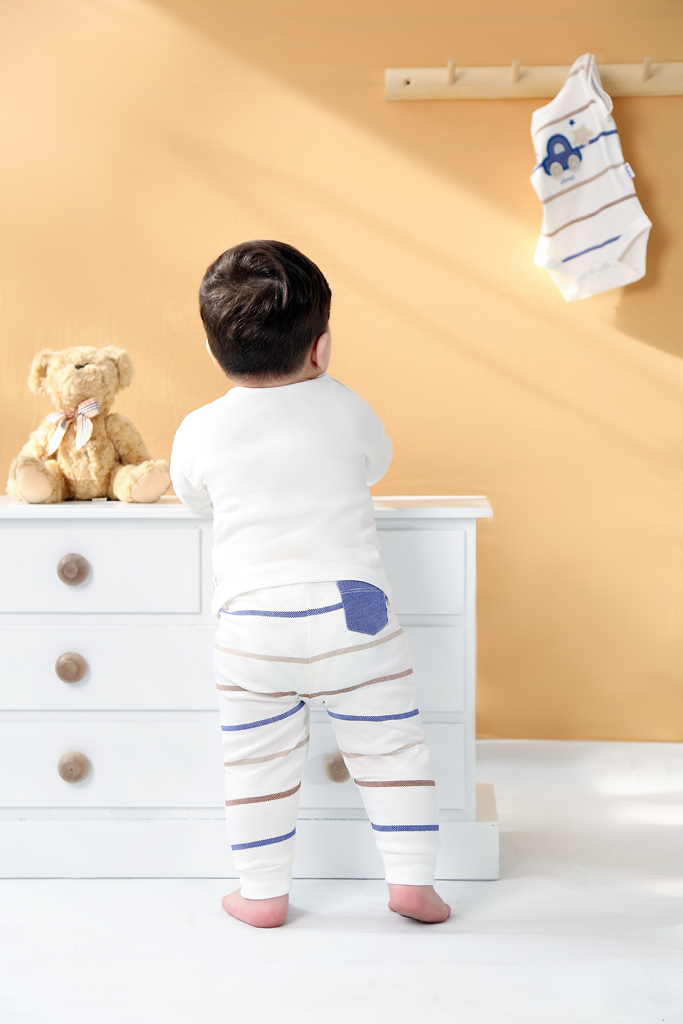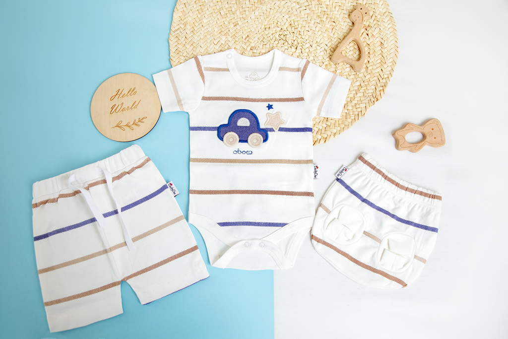 جنس پارچه به کار رفته در این مدل پنبه خالص بوده و طراحی الگوها بنا بر روش بین المللی مولر می باشد. بر روی تمام این محصولات برچسب : ماه ، (( وزن )) ، (( قد کودک )) و طریقه ی شستشو درج گردیده تا استفاده کنندگان محترم بتوانند اندازه و سایز مورد نظر فرزند دلبند خود و نیز نحوه استفاده از محصول را به راحتی انتخاب و به بهترین نحو استفاده بفرمایند . سایز بندی این مدل در حالت کلی ، دارای سایز های :